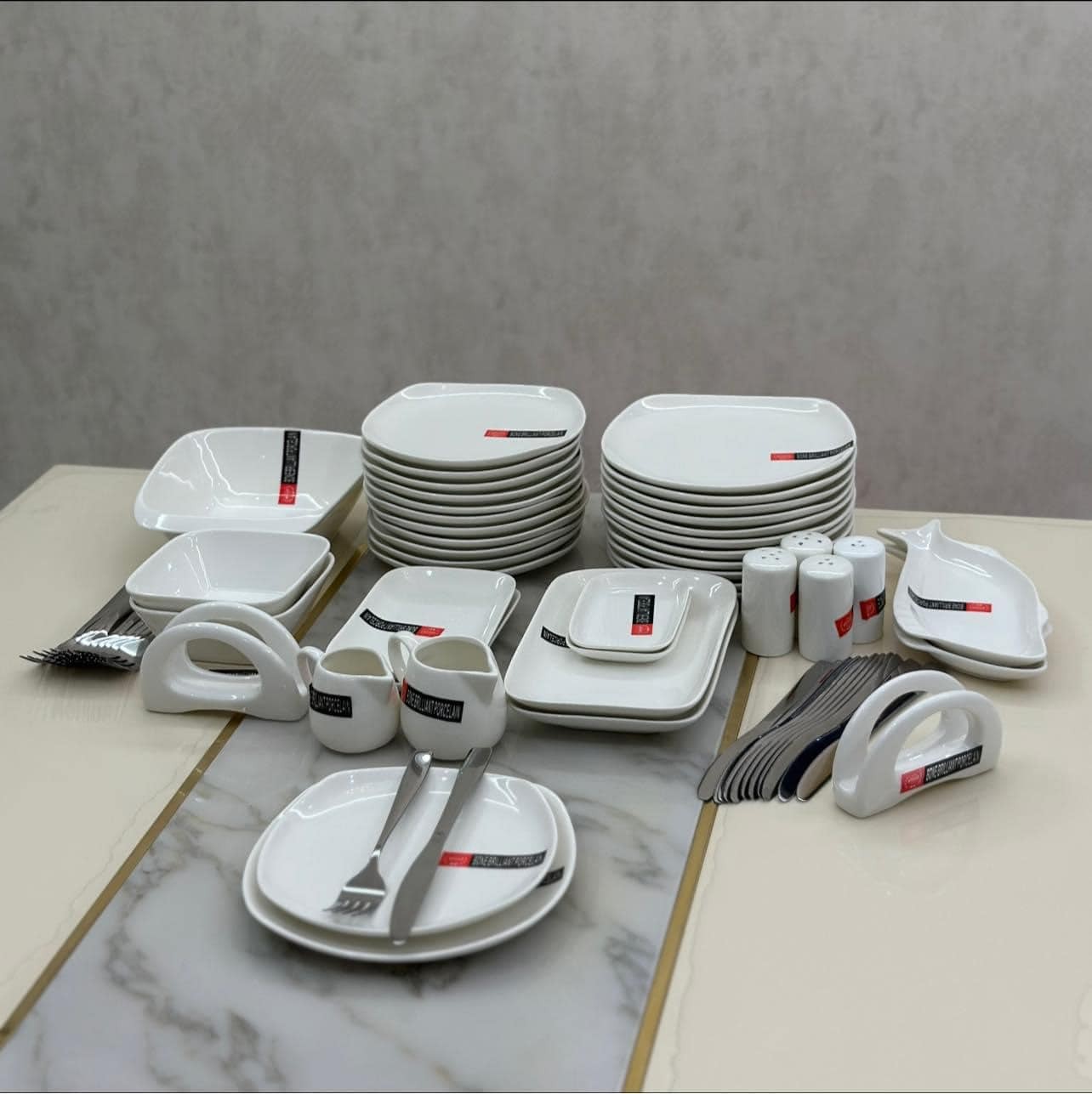 12 პერსონა BoneBrilliantPorcelain + 12პერსინაზე დანა ჩანგალი