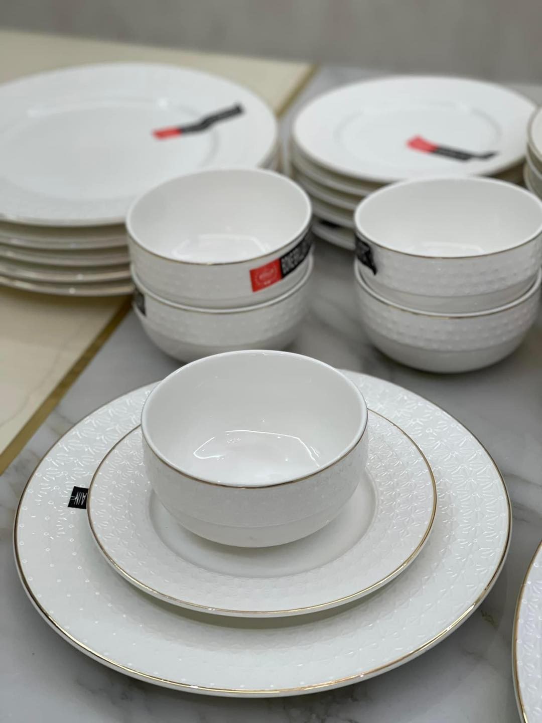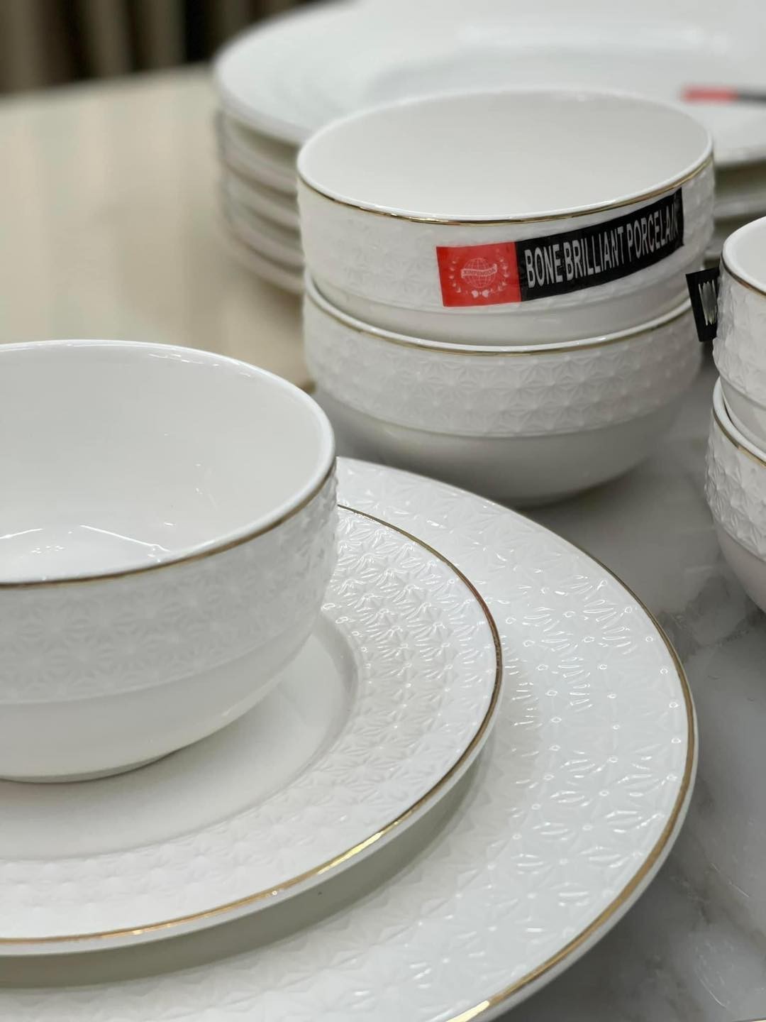 12 პერსონა BoneBrilliantPorcelain + 12პერსინაზე დანა ჩანგალი
